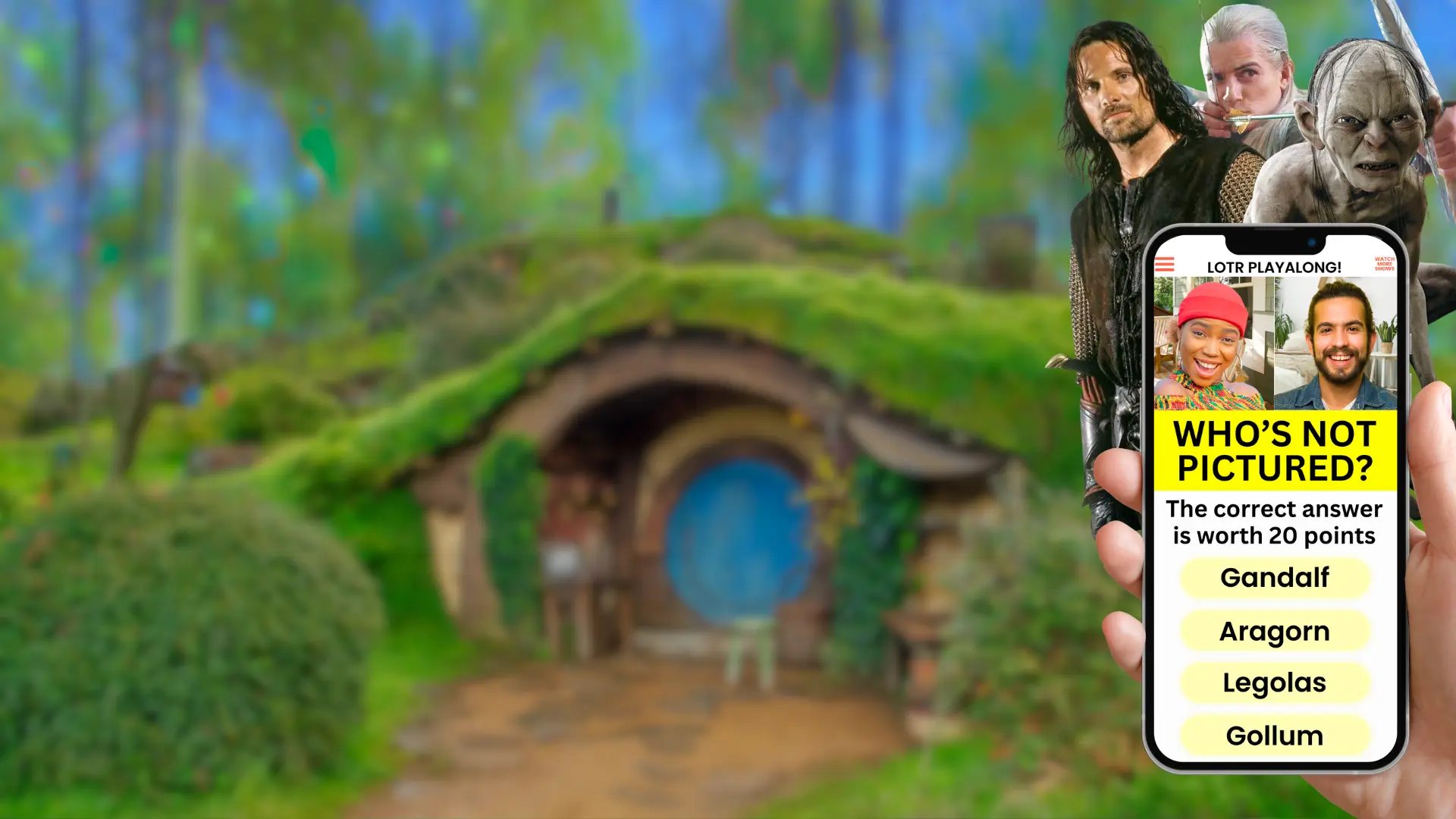 Play trivia as you watch Peter Jackson's original trilogy, the Rings of Power show, and more! Featuring minigames, polls, and BTS fun synced to the most iconic moments and characters of the franchise, like Ian McKellen's Gandalf, Viggo Mortensen's Aragorn, and Andy Serkis' Gollum. Play now alone or with friends on any device - this is the one trivia game to rule them all!